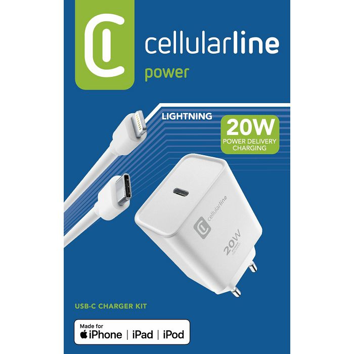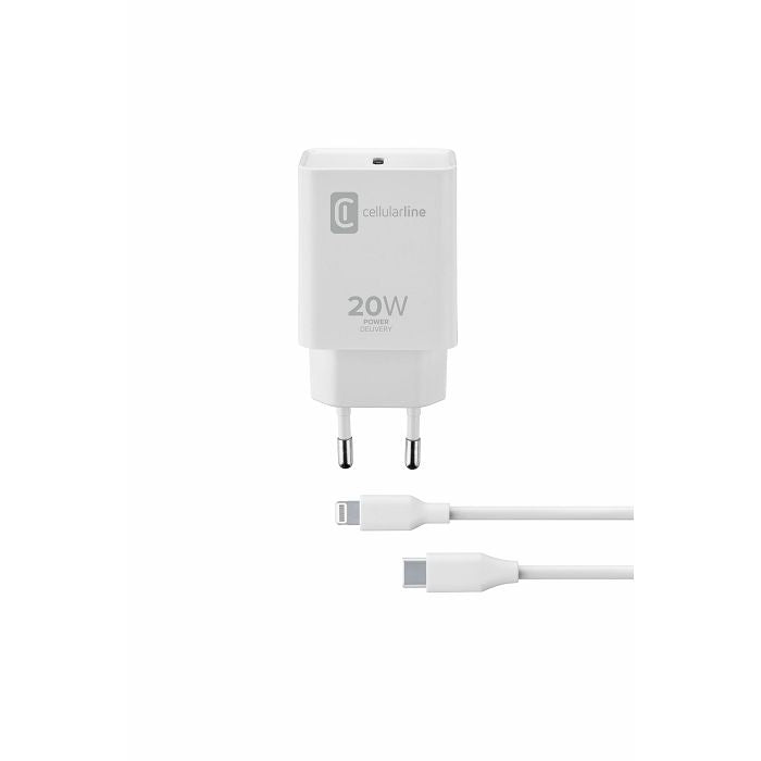 CellularLine hišni polnilec, USB-C 20W + kabel USB-C - LIGHTNING, Apple, bel